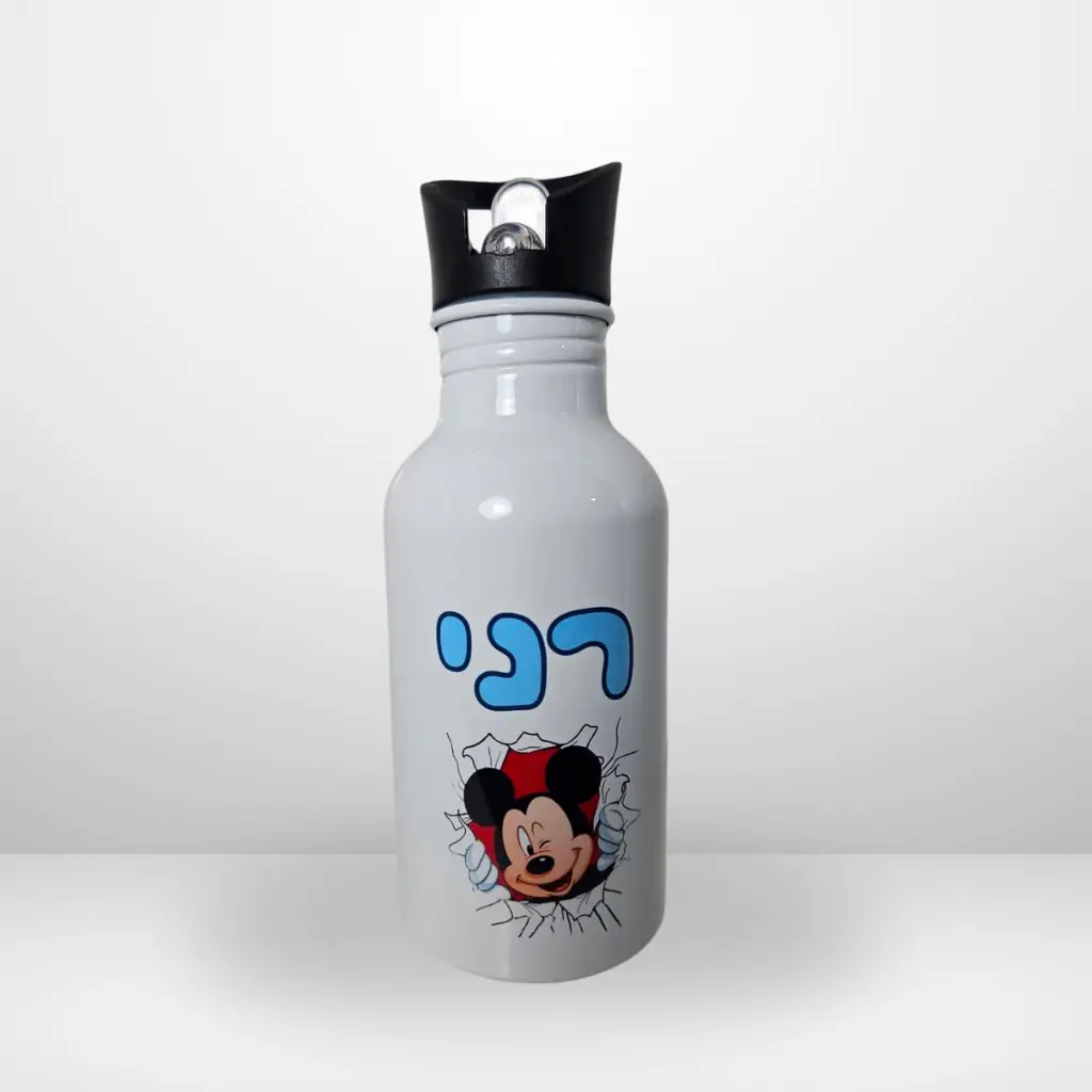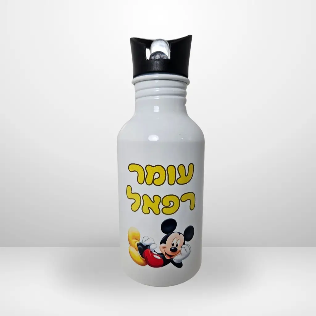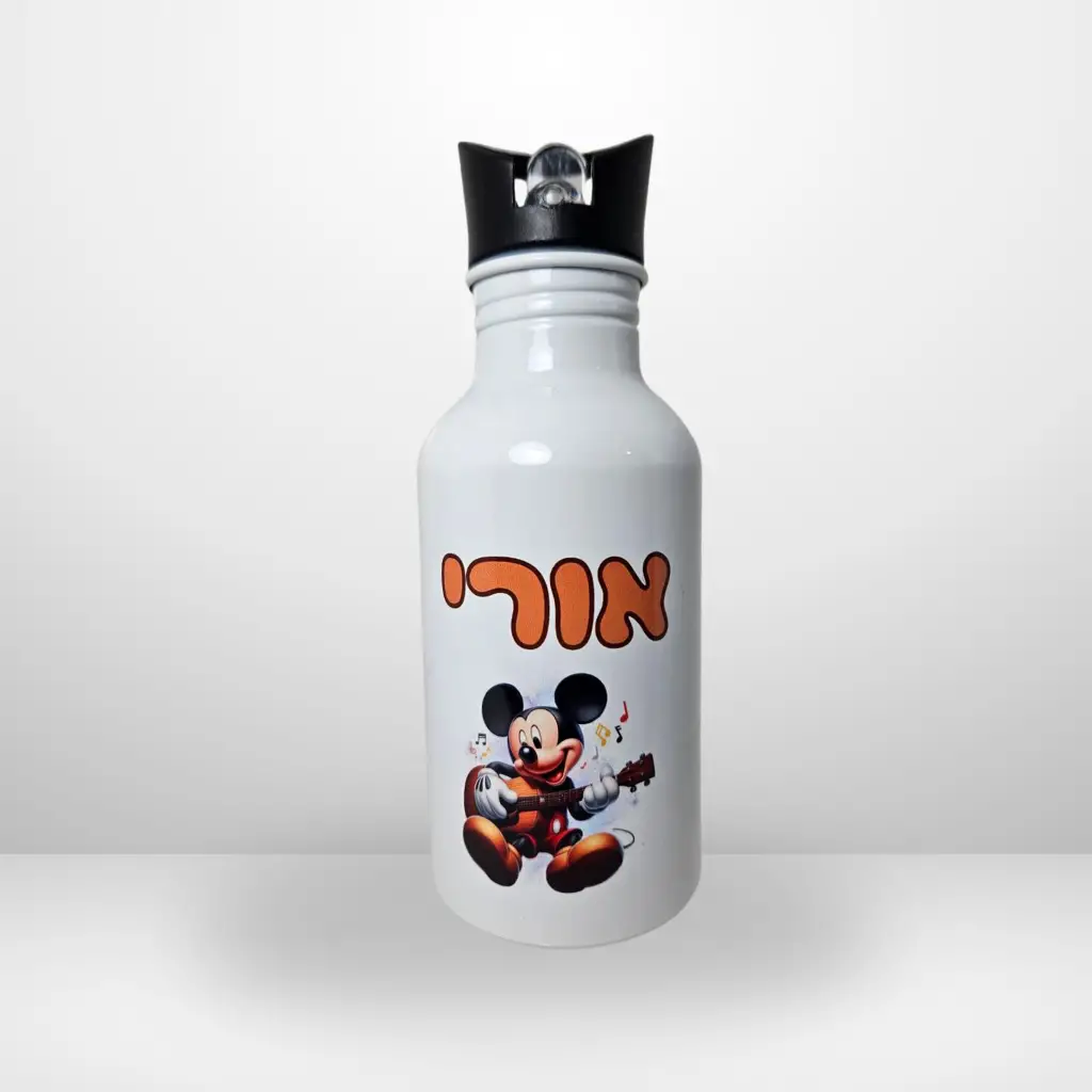 בקבוק אלומיניום עם קש בעיצוב אישיקל משקל, נוח לשתייה ונייד לכל מקום.הבקבוק המושלם לילדים ונוער, עם הדפס אישי שיעשה להם חיוך.