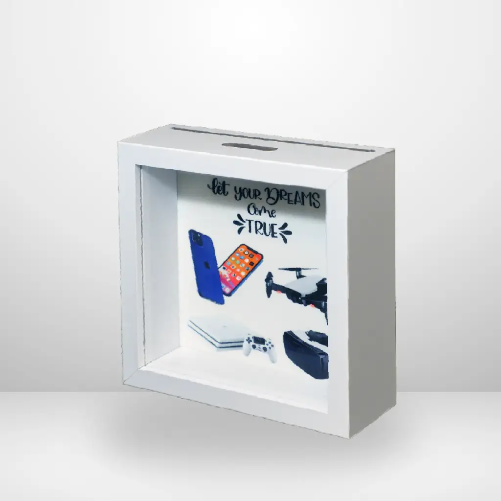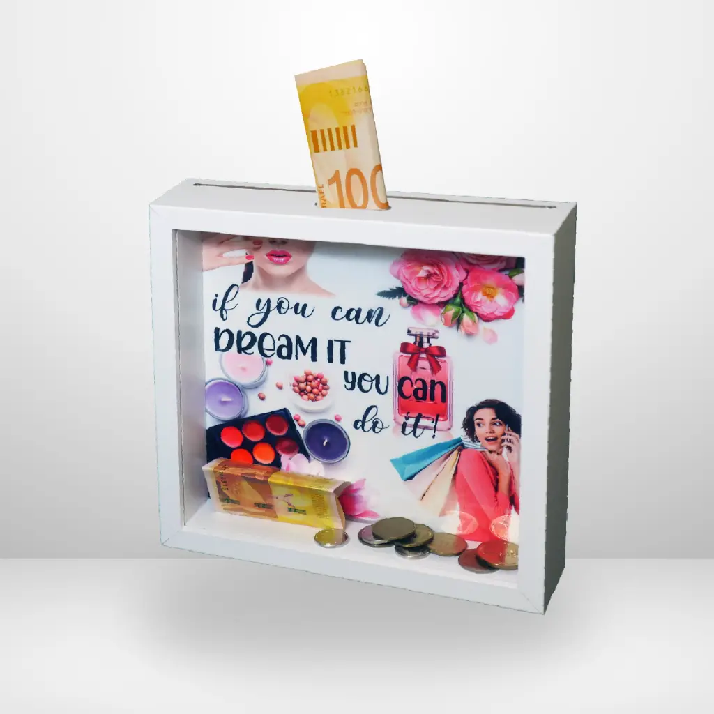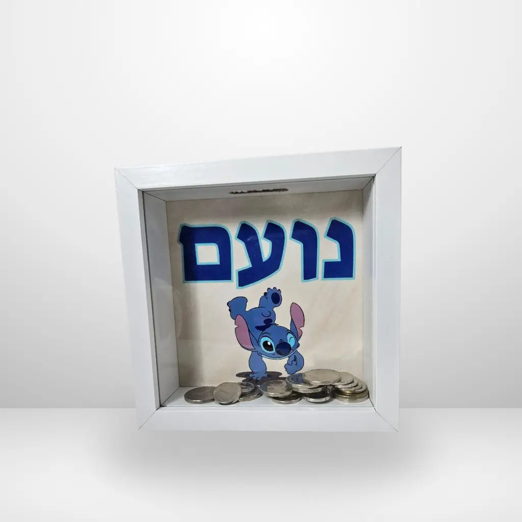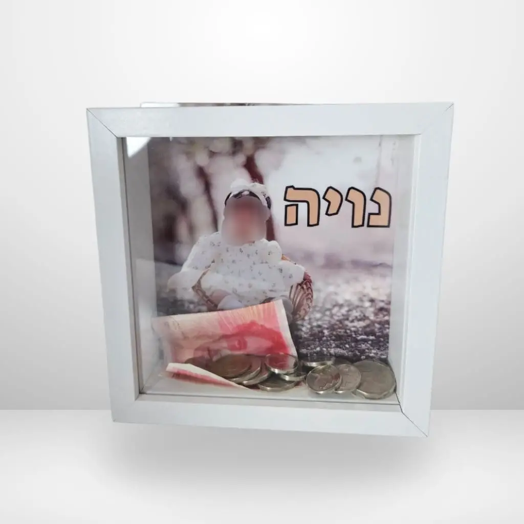 קופה בעיצוב אישי עם שם או כיתובעוזרת לחסוך ומלמדת את הילדים על ערך הכסף בצורה כיפית ואישית.